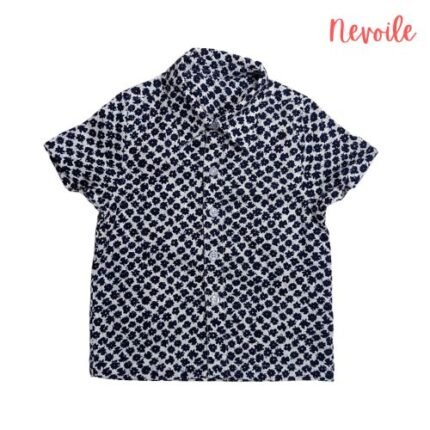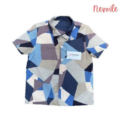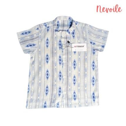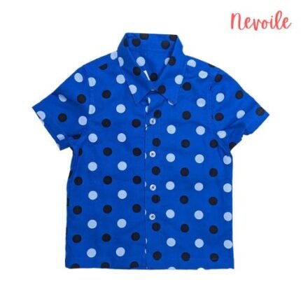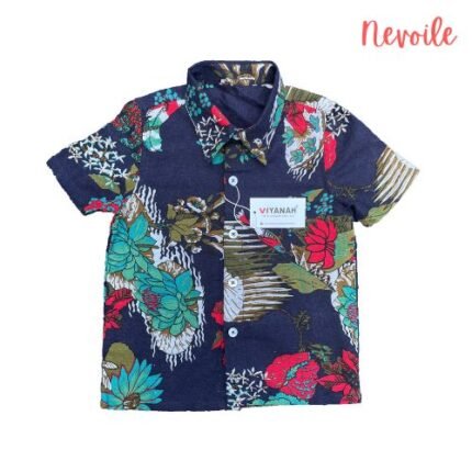 Kids Boys Linen Shirt Navy Blue with Floral Design